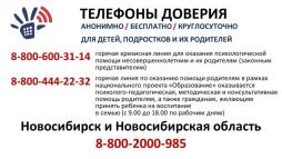 Ежегодно в преддверии Международного дня детского телефона доверия, который проходит 17 мая, в Новосибирской области организовывается акция по информированию несовершеннолетних об общероссийском детском телефоне доверия.